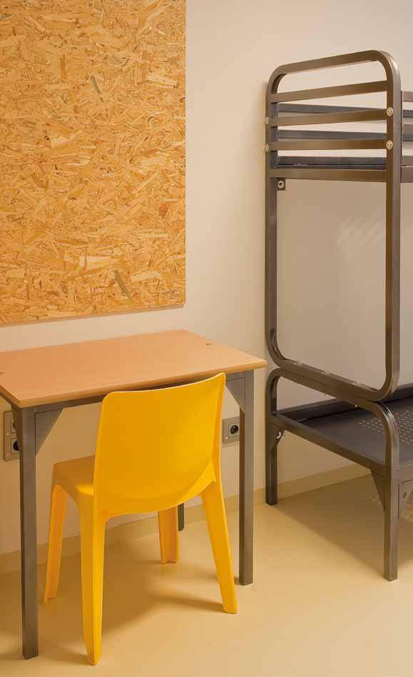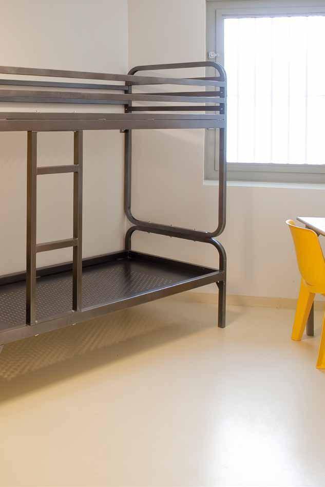 les lits en métal sont fabriqués sur mesure pour répondre aux contraintes d'un tel établissement.