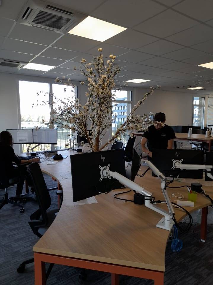 Pour ces bureaux neufs, une ambiance chaleureuse et colorée était recherchée. Dans plusieurs bureaux ont été installées des plantes artificielles plus que réalistes pour venir apporter de la verdure dans ces espaces de travail. Ces fausses plantes sont simples d'entretien ce qui est idéal pour un lieu professionnel.